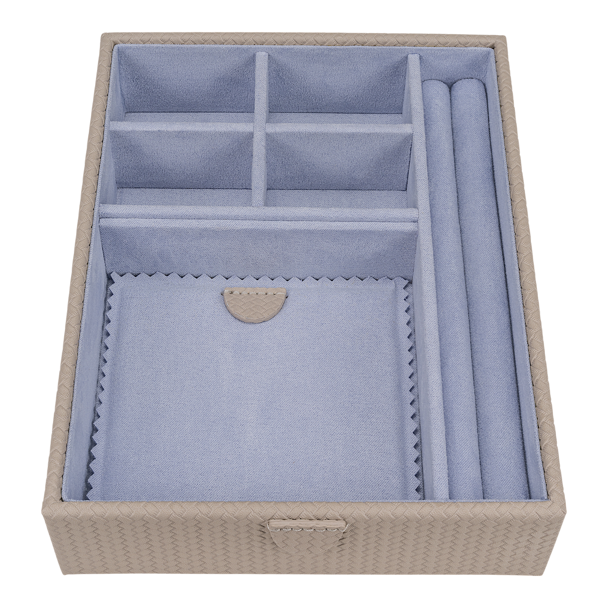 - 4 kleine Fächer (je 4x4,3cm) mit 3 Ohrringstegen als Abgrenzung